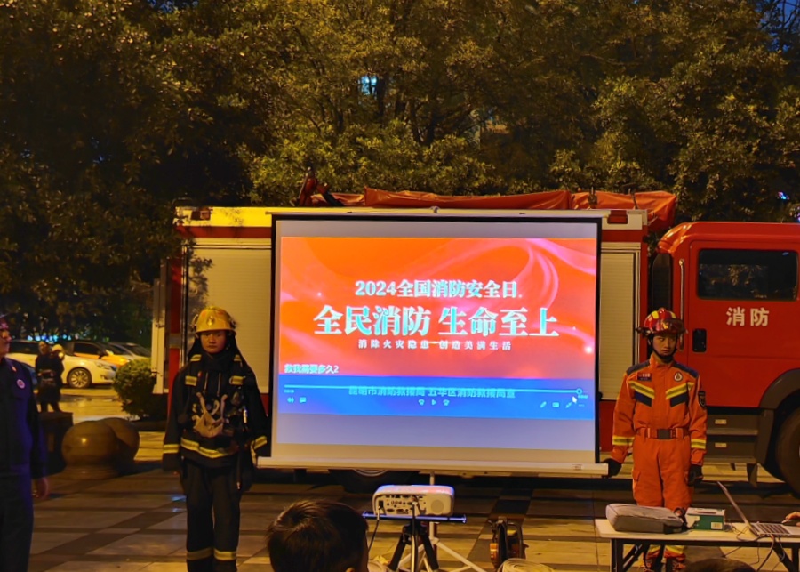 11月28日,为切实增强社区居民消防安全意识和自防自救能力,营造“人人关注消防、人人参与消防”的良好氛围,云南省昆明市五华区消防救援大队联合五华区红云街道消防工作站、红锦社区、云南伦华物业服务有限公司在天骄北麓北区广场开展“露天影院,点亮消防院坝‘夜课堂’”活动。